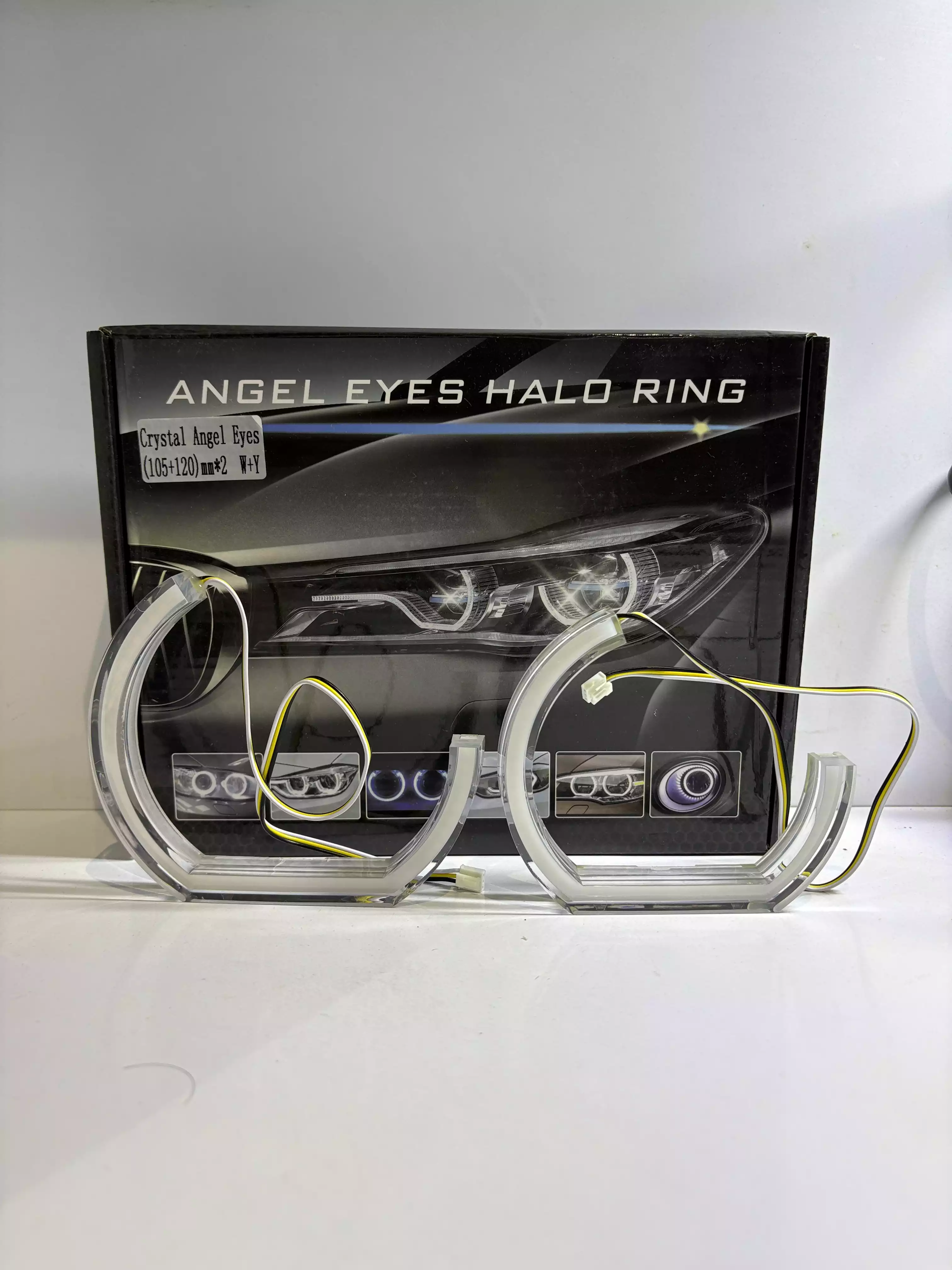 آنجل لایت با نور یک دست زیبایی خاصی به چهره ماشین شما میده سایز 105*120 پک 4 عددی برای 2 عدد چراغ این آنجل فوق العاده با کیفیت است و قابل مقایسه با نمونه های بازاری نیست همراه با ترانس و ادوات نصب